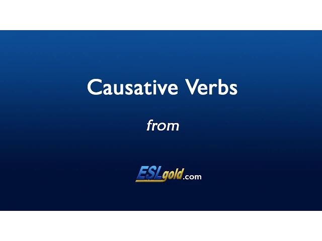 In this video ESL students will learn all about causative verbs in English. ESLgold.com is one of the world's largest collections of ESL learning resources including videos, lessons, information and quizzes. Visit us today at www.ESLgold.com.