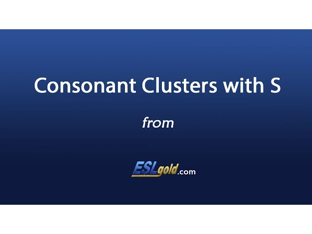 In this video ESL students will learn about consonant clusters with the letter S in English pronunciation. ESLgold.com is one of the world's largest collections of free ESL learning resources, including, videos, examples, quizzes, tests, and tools. Visit www.ESLgold.com today and start learning English faster and easier than ever before!