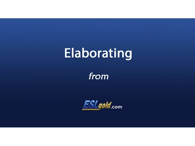 In this video ESL students learn how to elaborate in English. ESLgold.com is one of the world's largest collections of free ESL learning resources, including, videos, examples, quizzes, tests, and tools. Visit www.ESLgold.com today and start learning English faster and easier than ever before.